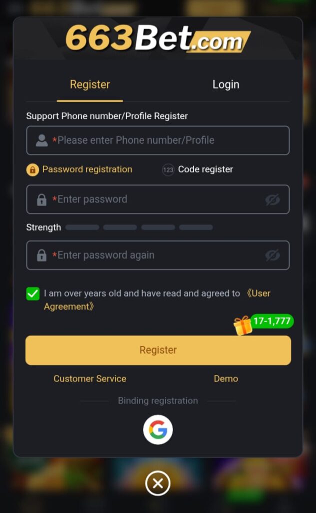 To start playing, you need to create an account on the 663 Bet game platform.